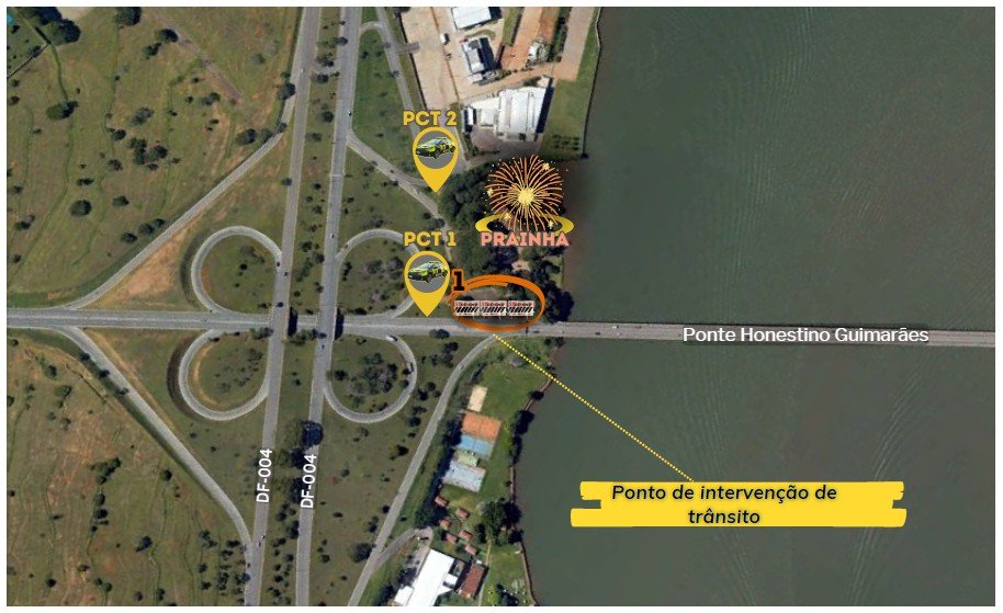 Nas duas noites de shows na Prainha, serão montados dois pontos de controle de trânsito (PCTrans) nos acessos à Praça dos Orixás provenientes da Ponte Honestino Guimarães e da via L4 Sul. Além de impedir o acesso de veículos, os agentes farão o controle do tráfego, auxiliando os pedestres nas travessias e coibindo irregularidades de trânsito que comprometam a fluidez e a segurança viária, como estacionamento irregular e direção sob influência de álcool, por exemplo.